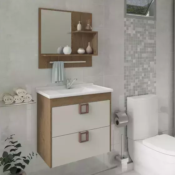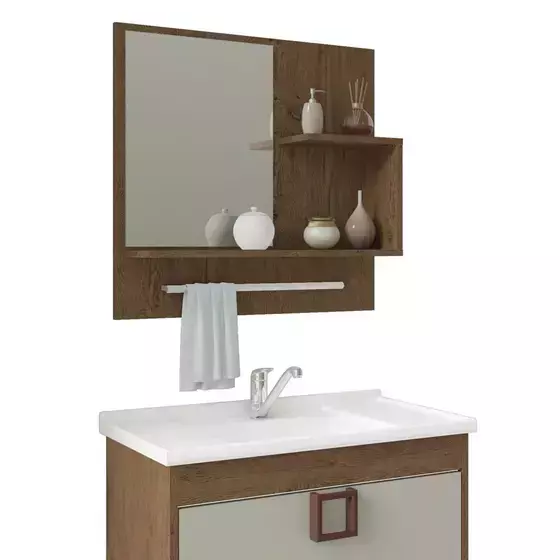 Que tal renovar o seu banheiro com muita qualidade e estilo, mas não tem muito espaço? O Conjunto Armário para banheiro Lírio é o produto perfeito para isso, pois é compacto e possui um design simples e moderno. Projetado exatamente para espaços como o seu, ele possui a estrutura em materiais de qualidade e divisórias excelentes para acomodar todos os seus pertences. Além disso, ele recebe pintura UV, a fim de garantir maior proteção e prolongar a vida útil do móvel. Ao adquirir este conjunto para banheiro MGM, você estará levando um balcão com 1 Porta basculante e 1 Gaveta com com puxadores em ABS modernos, além de Cuba em mármore sintético, A espelheira conta com 2 prateleiras e 1 porta-toalhas, agregando muito mais qualidade ao conjunto se tornando um móvel completo para seu lar