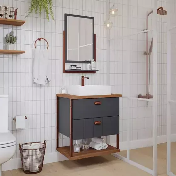 Produto: Gabinete de Banheiro Uni com Cuba e Espelheira 60cm Titanium/Freijo - MGM